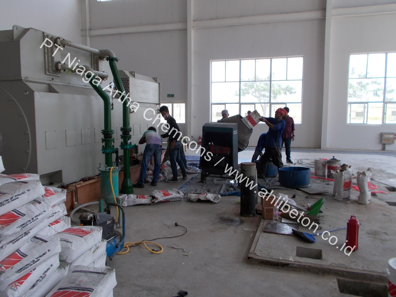 Material yang kami gunakan adalah Conbextra GP Premix Ex Fosroc, sama hal nya dengan proyek yang pernah kami kerjakan yaitu (baca juga : Grouting Base Plate).