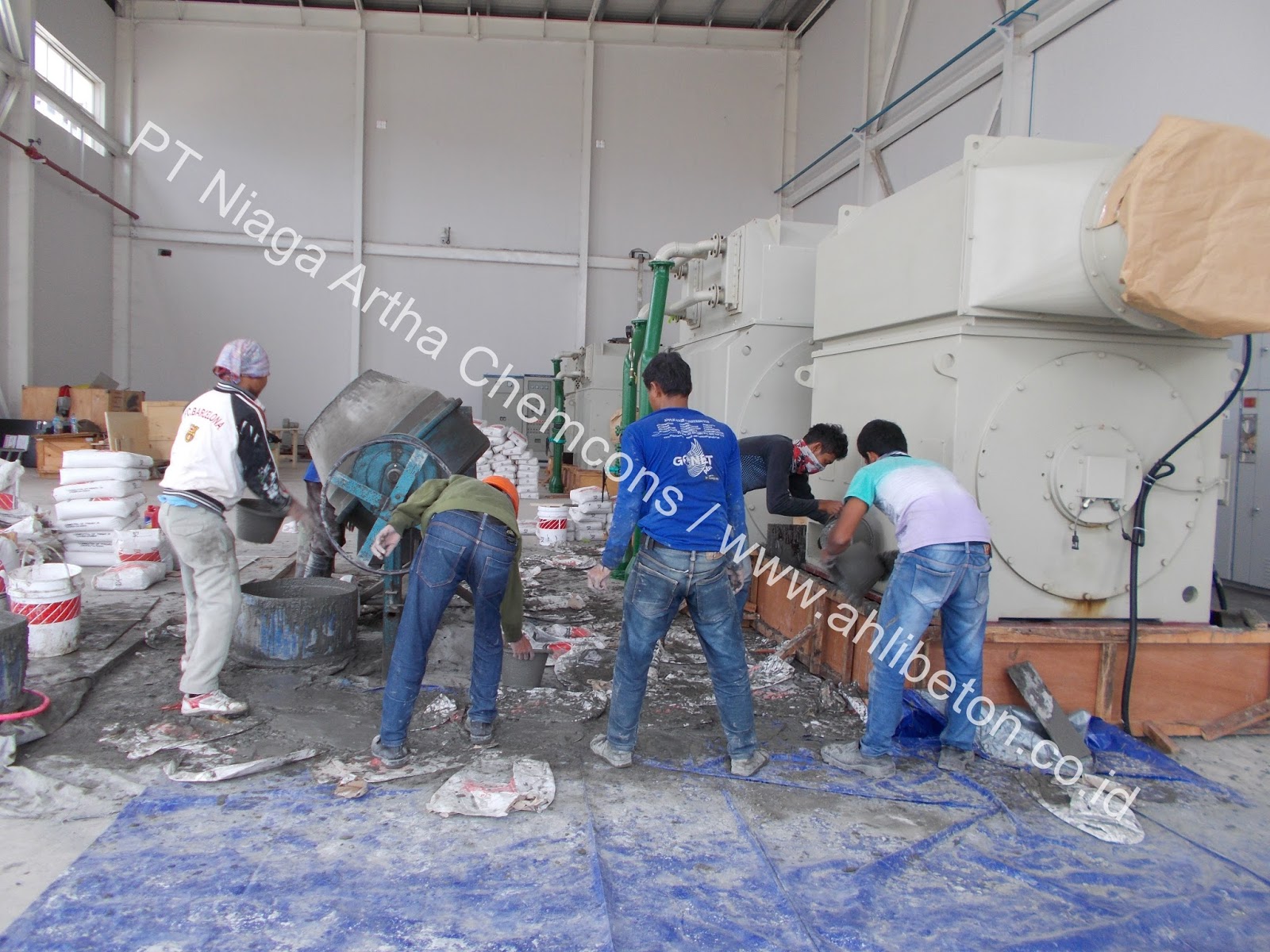 Material Grouting kami lakukan di sebuah pabrik multi nasional yang berlokasi di Deltamas Cikarang, tepatnya pada baseplate pondasi mesin genset. Tujuan utama untuk grouting dibawah base plates mesin adalah untuk mengisi celah kosong setelah leveling sehingga mengurangi getaran dan menjaga integritas struktural dengan pondasi.