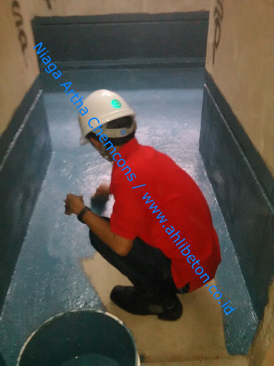 Waterproofing Coating bagian lantai tolet di PT. Ajinomoto Indonesia – Kawasan KIIC Karawang. Aplikasi ini dilakukan karena belum adanya perlindungan kebocoran pada area toilet lantai 2.