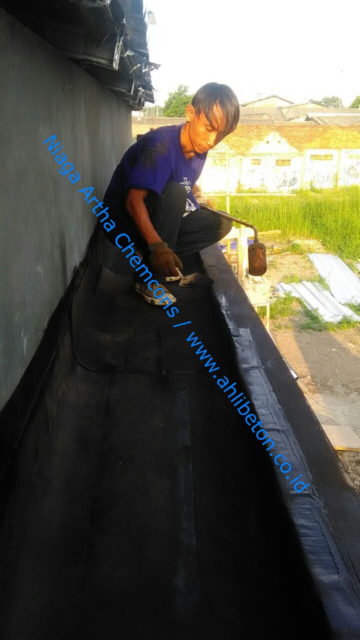 Material yang kami gunakan adalah Boscoseal TOM ex Bostik. Material ini berbahan dasar Bitumen APP yang diperkuat dengan non Woven Polyester dengan ketebalan 3 mm, tahan terhadap cuaca dan tidak mudah robek. Sangat baik digunakan untuk area dak atap beton, balkon, terowongan dan lain-lain.